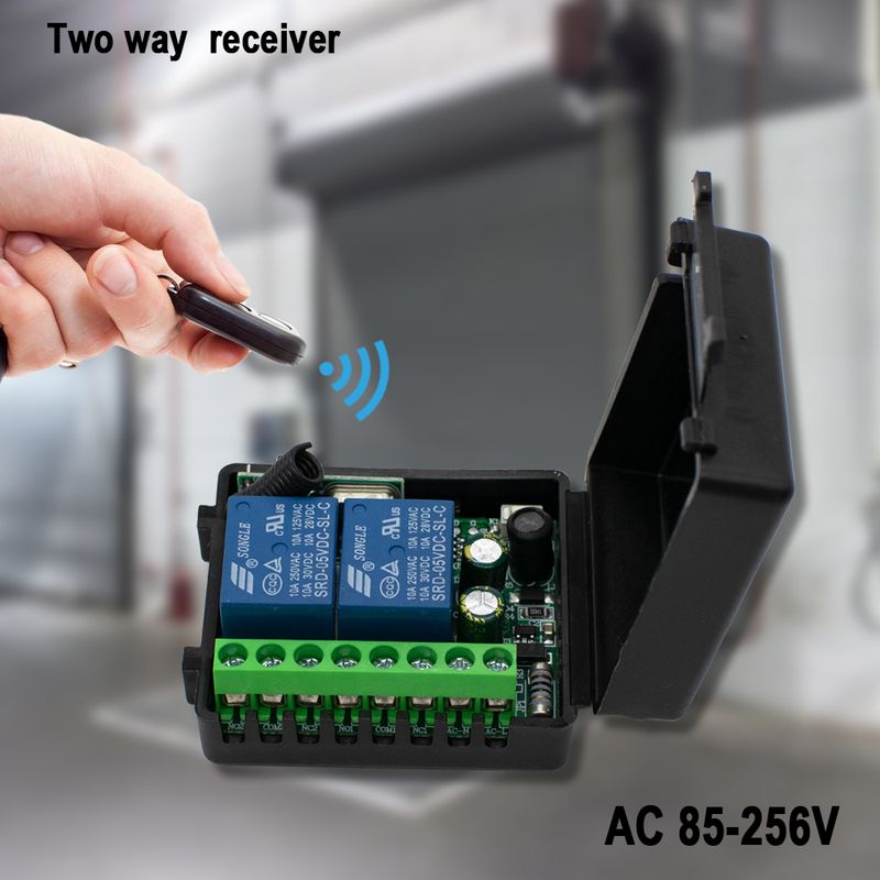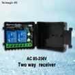 DC 12V 24V / AC85-256V 2CH Relay Receiver 433MHz rf Function for Garage Door Light LED Lemp Motor Signal transmission