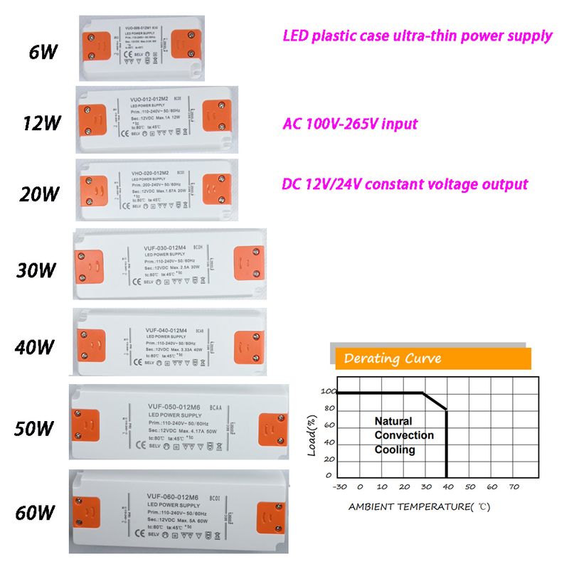 Output Power: 6W / 12W / 15W / 20W / 30W / 40W / 50W / 60W