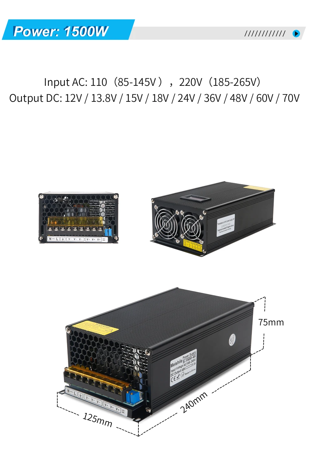 Input voltage: 110V/220V ±15% (95-140V,180-260V)