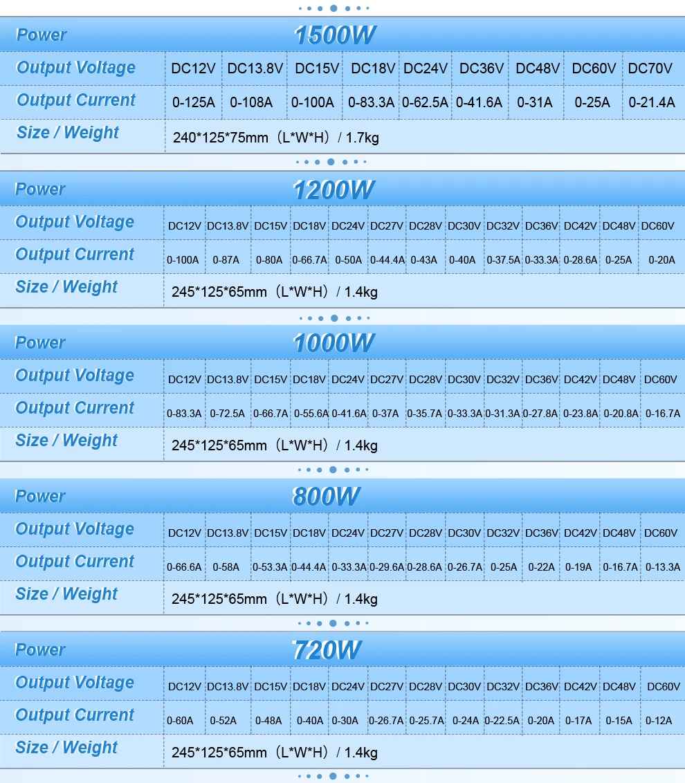 ·For Halogen lamps, Stepper motors, Brushless motors: 2 times the used power = the rated power of the SMPS.