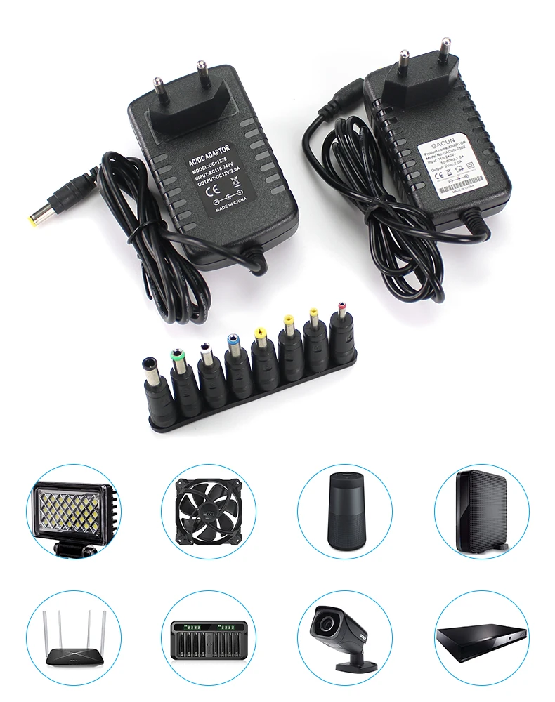 DC 5V 6V 9V 12V 2A Power Supply Adapter Charger AC 110V 220V AC DC Power Adapter DC Plug Converter EU US with 8pcs Connect Plug
