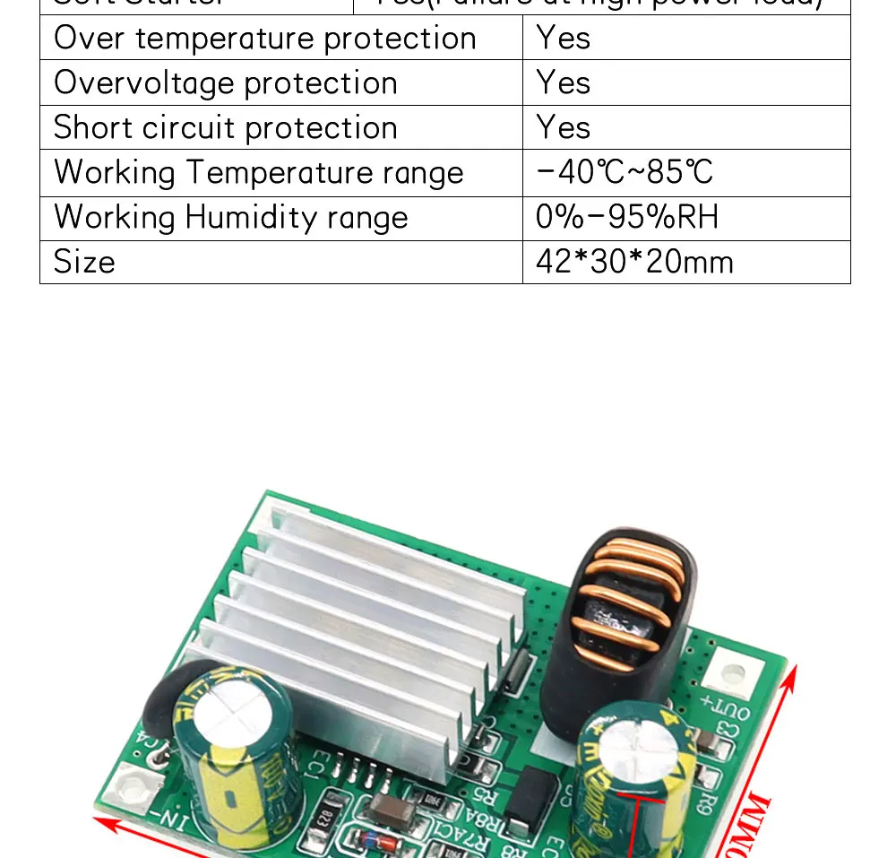 Note: the minimum voltage difference between input and output voltage needs to be greater than 4V; The minimum input voltage at 12V output is 16V.