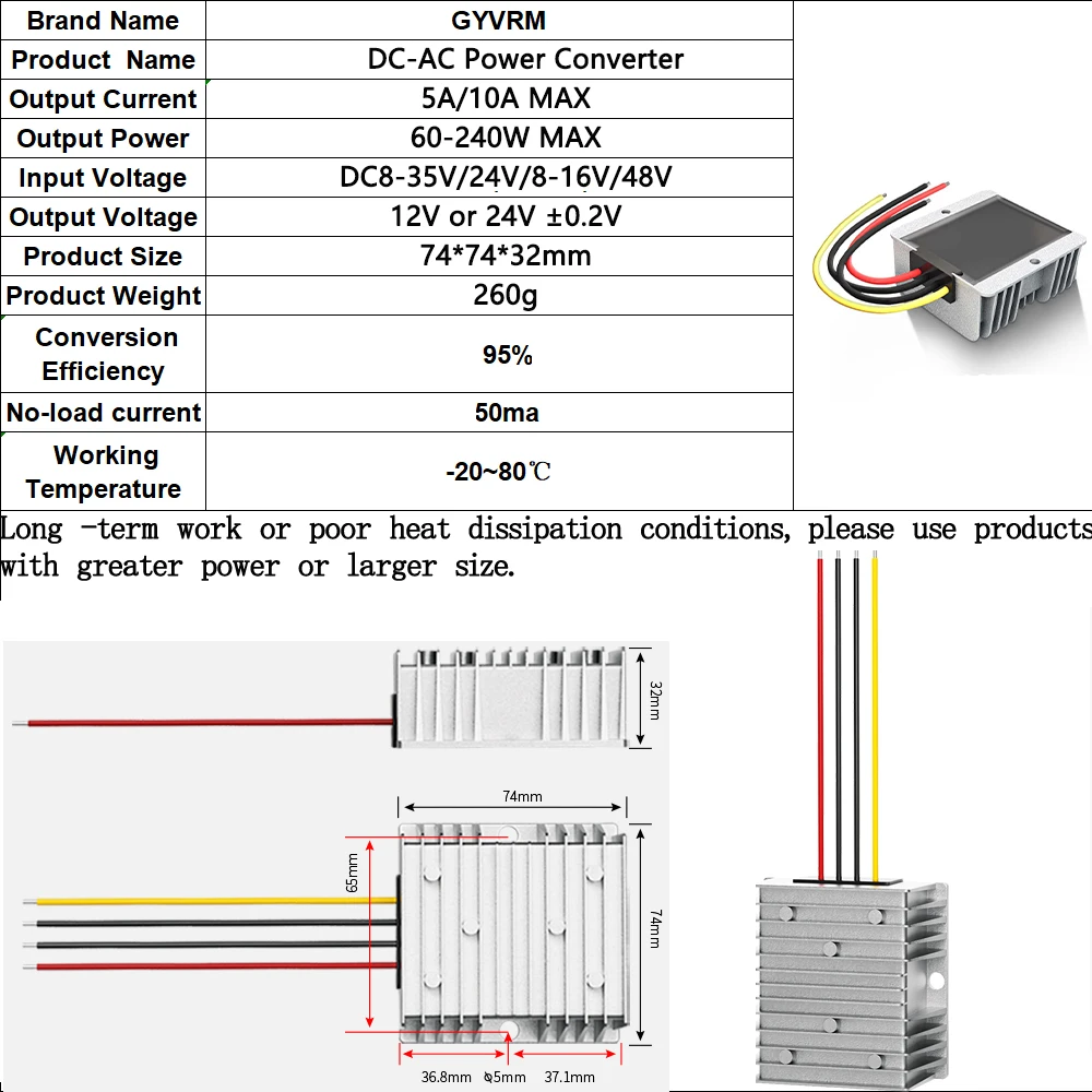 !!!Long-term use cannot be fully loaded, please reduce power or choose more powerful products, best 50% of maximum power.