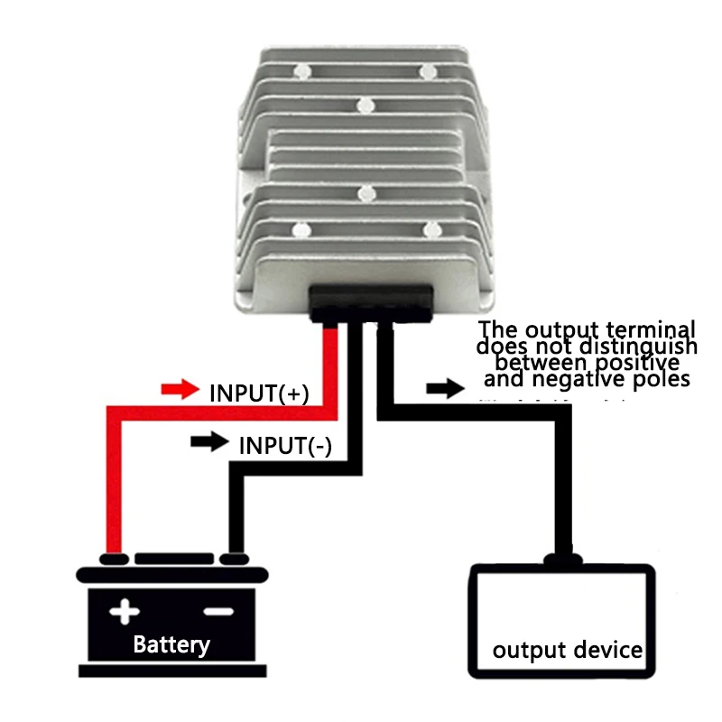 3. Connection (OUTPUT-) to load negative, connection (OUTPUT +) to load positive