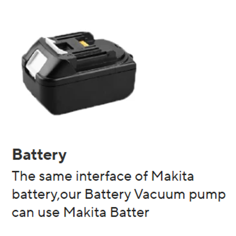 The same interface of Makita battery,our Battery Vacuum pump can use Makita Batter