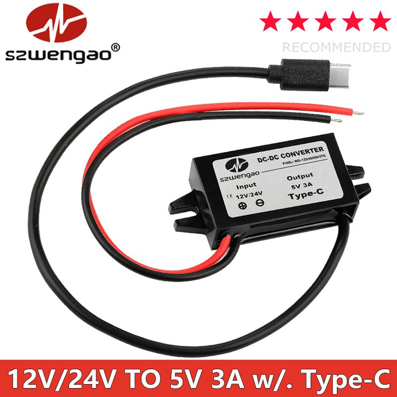 DC-DC 12V 24V to 5V 3A 15W Car Power Converter Type-C USB Step Down Voltage Power Supply Output Adapter with Reverse Protection