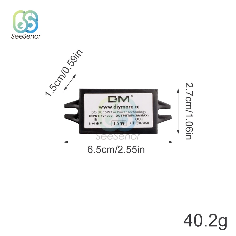 2. Input: DC 8-20v, (12V to 5V)