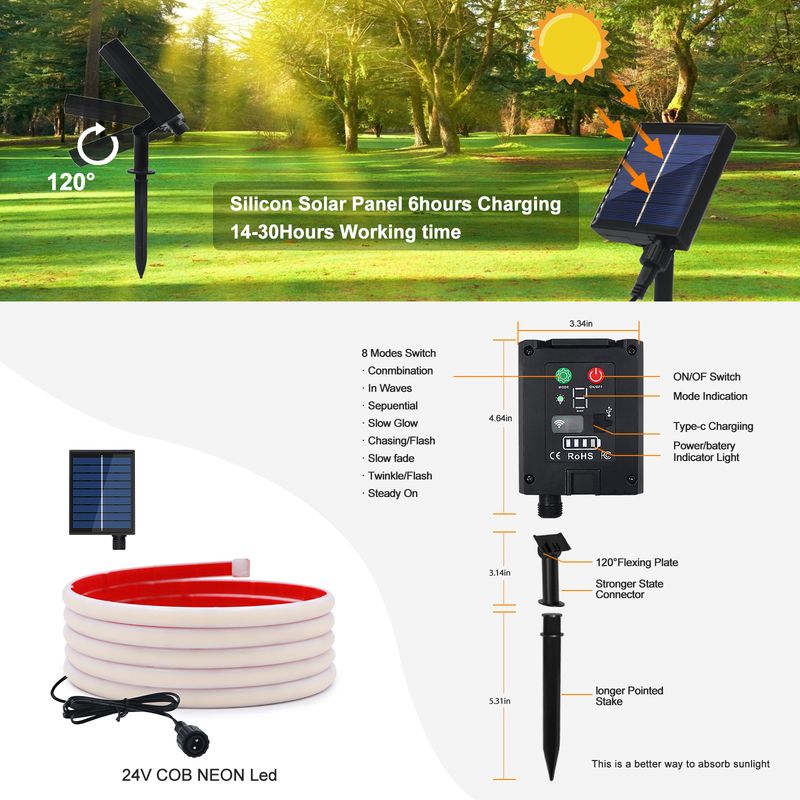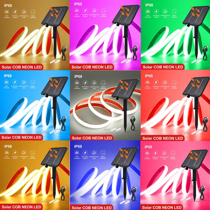 DC24V Solar Powered COB Neon LED Strip IP68 Waterproof 320Leds/M Flexible Adhesive Ribbon Rope Light Home Garden Linear Lighting