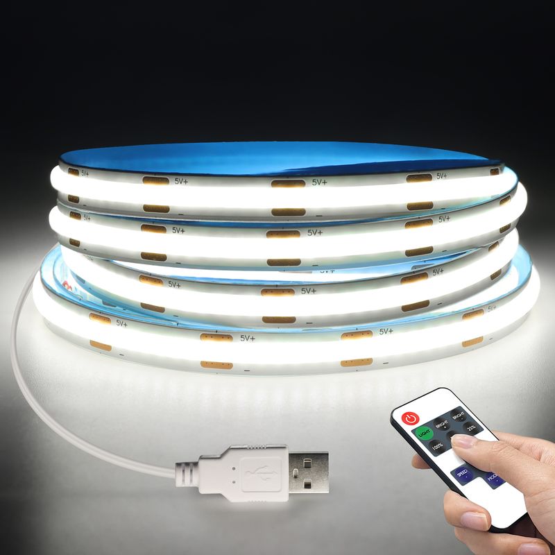 DC5V COB LED Strip with Dimmable Remote Control 2/3/5M White/Warm White COB Strip Light For Indoor Home Cabinet Decor Lighting