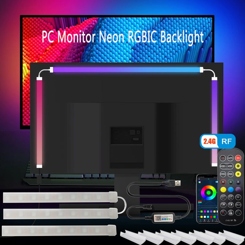 DC5V Monitor LED Neon RGBIC Backlight Bluetooth App Control LED Strip Light Sync Music for PC/Mac LEDs for Desk Gaming Behind