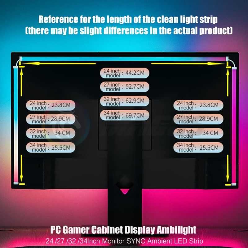 Easy to assemble and use: Stick the game light strip on the back of the computer and connect it. The light strip is also suitable for computer display screens ranging from 27 to 34 inches.