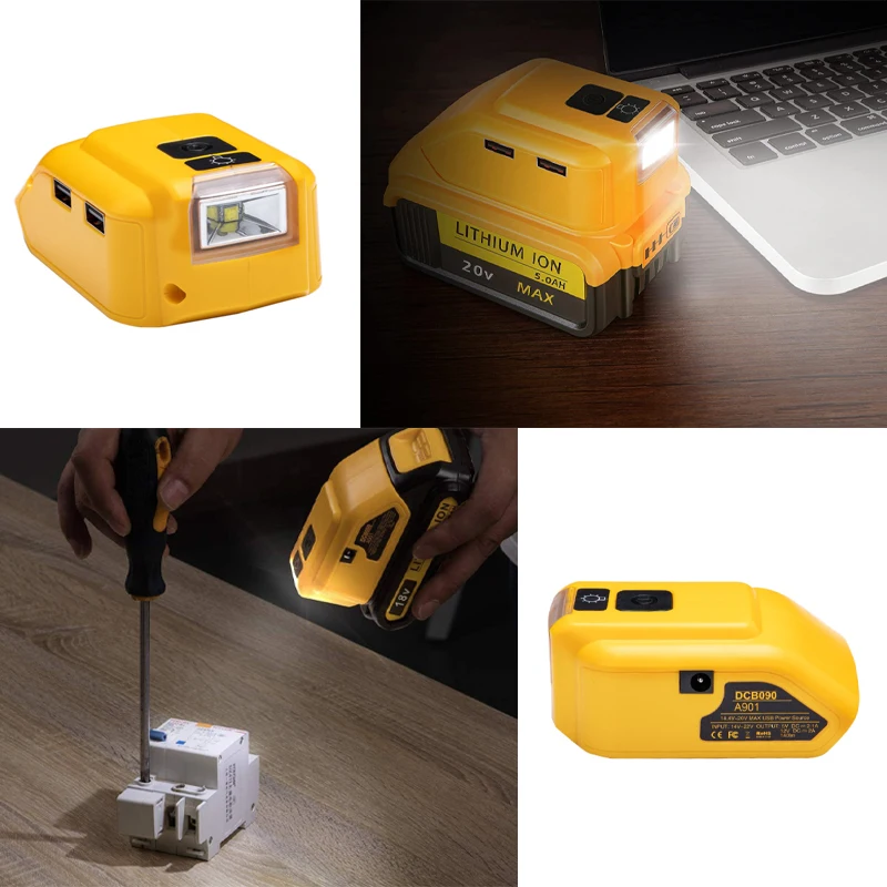DCB090 Power Source Charger Converter Battery Adapter For Dewalt 18V 20V Lithium Battery With USB Type C DC 12V LED Work Light