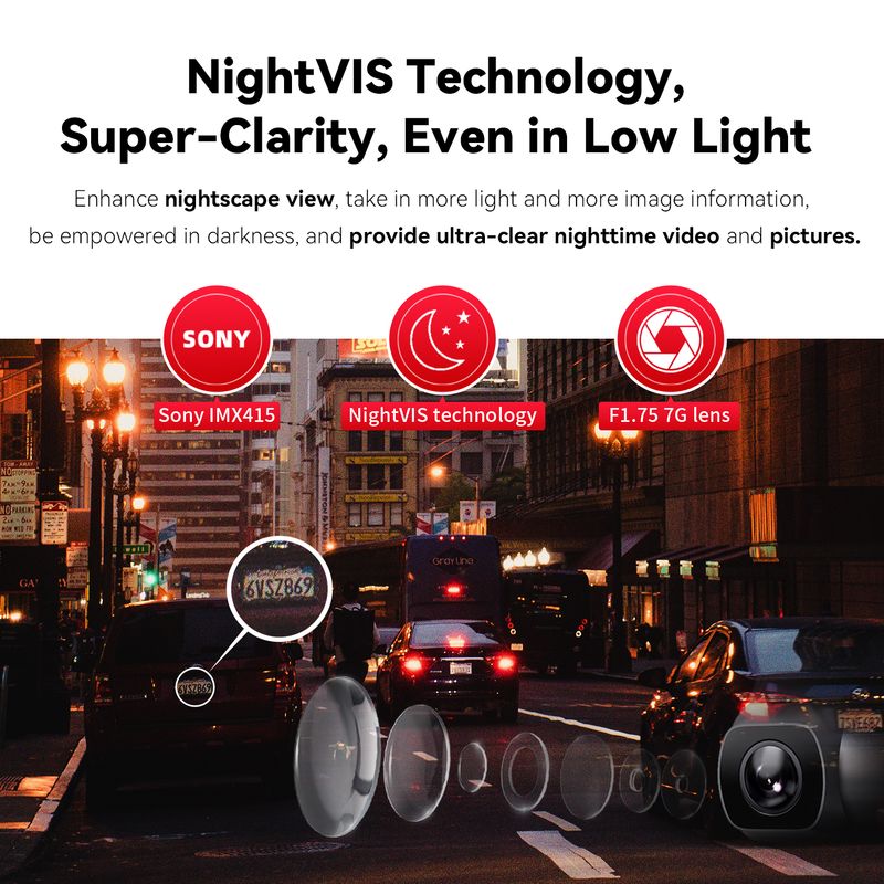 Based on Sony IMX415, A 7 optical lens, and F1.75 aperture, we also develop NightVIS technology to enhance the night view. A combination of software and hardware takes in more light and more image information, is empowered in darkness, and creates an Ultra-clear nighttime shoot.