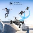 3D FlipPressing the 3D Flip mode button, then quickly push the direction lever(right lever)in any direction you want then release, the drone will rolling toward the corresponding direction. |