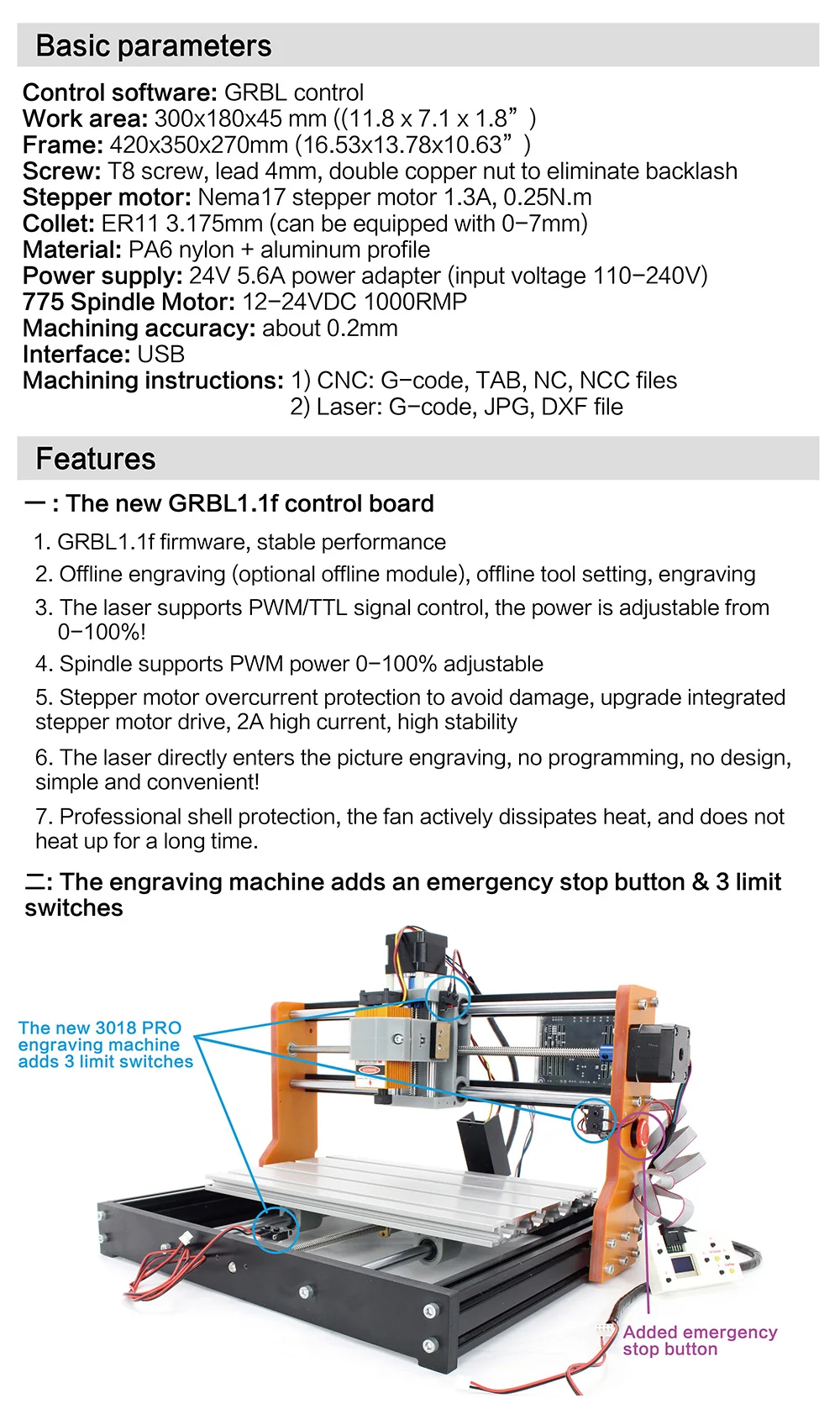 Compatible with 3018,3018 pro,3018 pro max,upgraded 3018 pro,3020 plus,4540 CNC Router