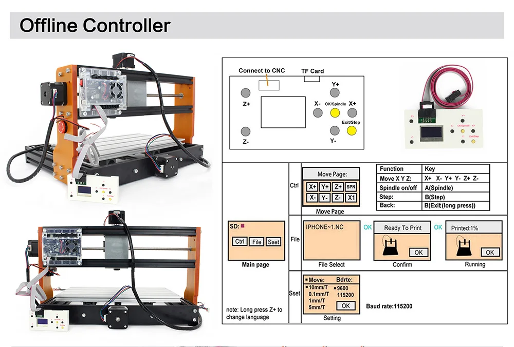 With this offline controller module, you can directly control the CNC router without connecting it to your computer.