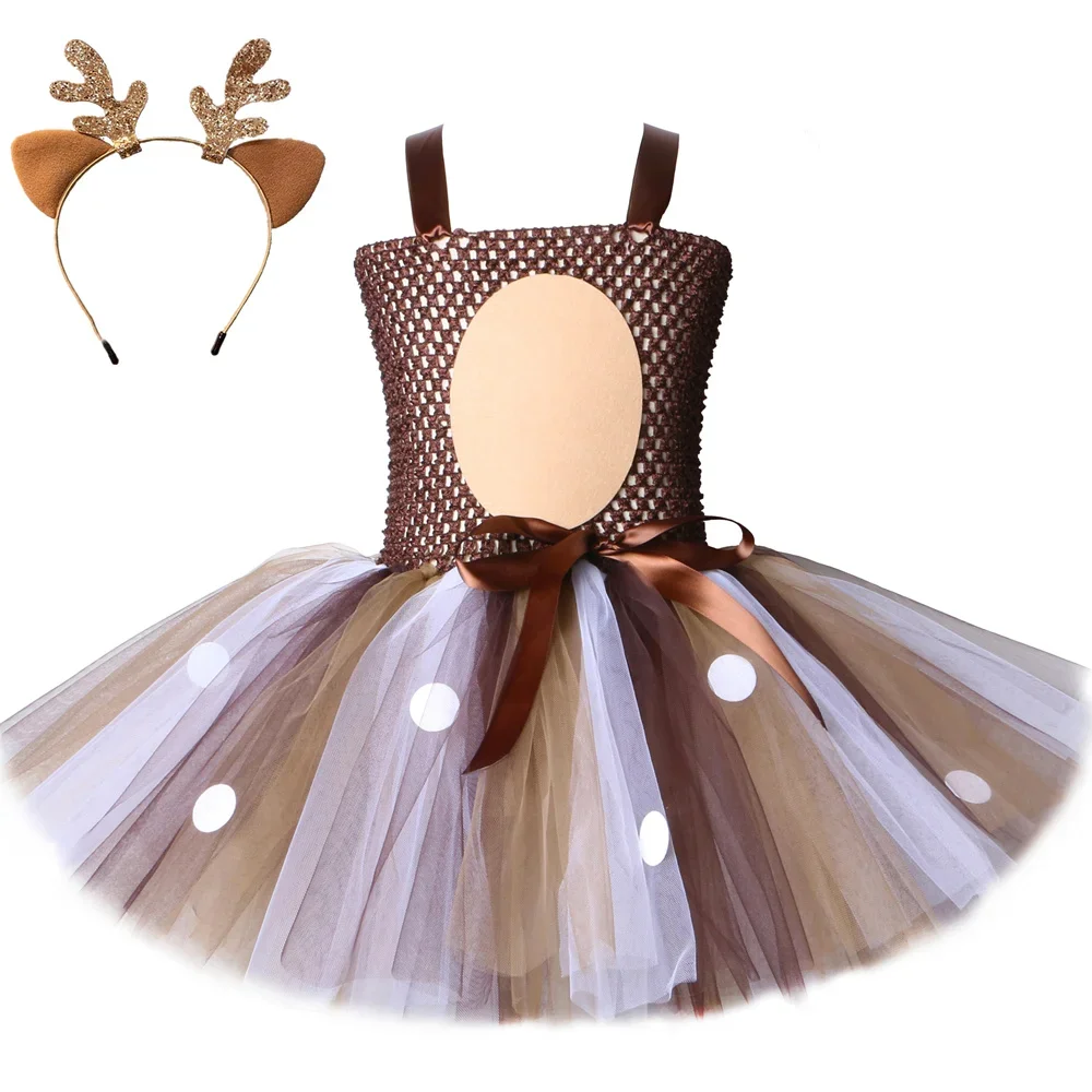Deer Costume for Girls Christmas Tutu Dress Girls Fancy Elk Reindeer Dress Up Clothes Kids Halloween Birthday Party Costumes