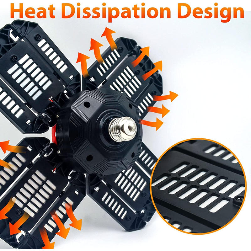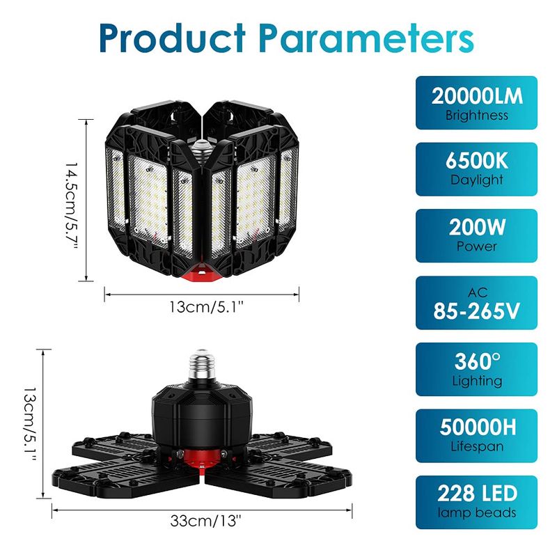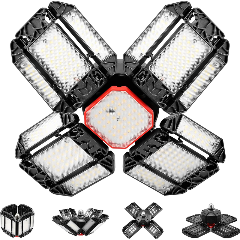Deformable LED Bulb Garage Lights with 12 Adjustable Panel, LED Bulb Night Lamp E26/E27 Ceiling Lighting for Workshop Warehouse