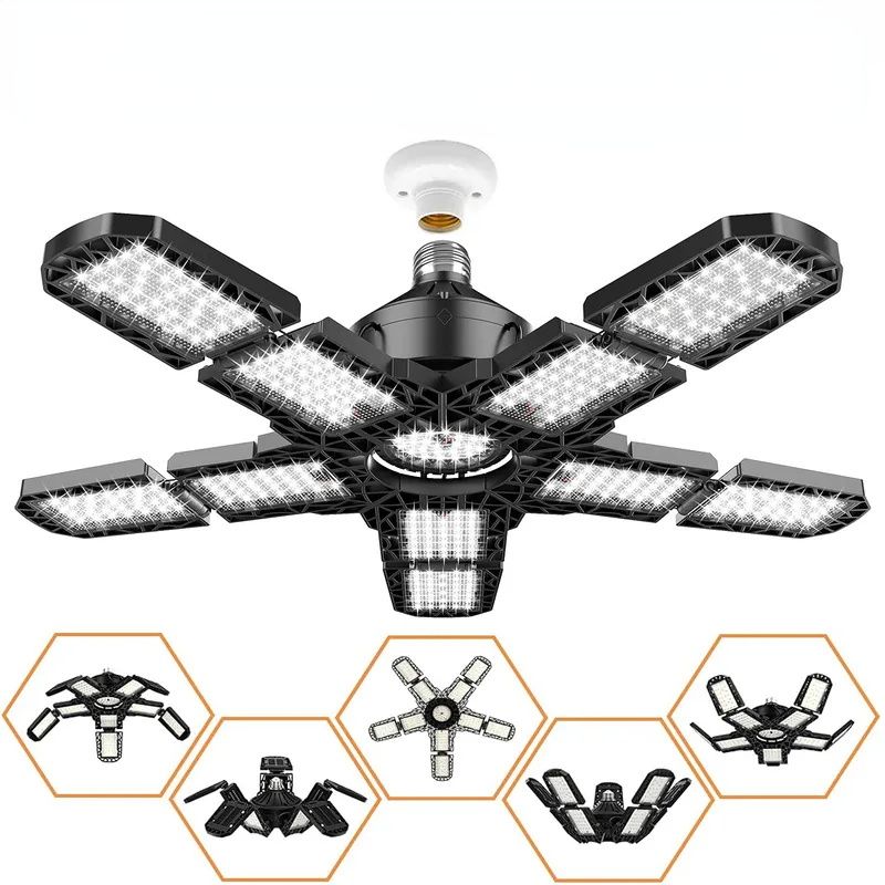 Deformable LED Garage Light With Adjustable 3/5/10 Panels LEDE26/E27 Ceiling Lamp Industrial Lighting for Workshop Shop Storage