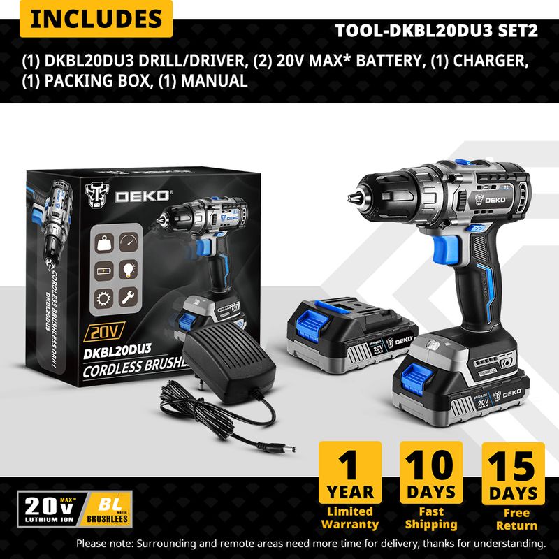 DEKO 20V Brushless Cordless Drill Combo Kit Mini Electric Screwdriver 2 Speed Power Tools for Woodworking