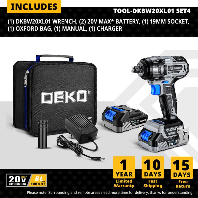 DEKO 20V Brushless Wrench Brushless Cordless Drill Mini Electric Screwdriver 350N.m Impact Wrench for Home DIY