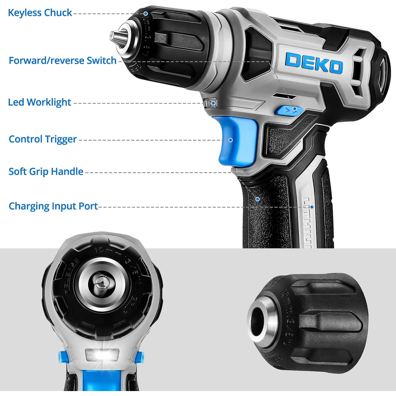 DEKO 8V Cordless Drill Set 3/8"Keyless Chuck, Wireless Mini Power Driver with Screw Set Electric Screwdriver Built-in LED