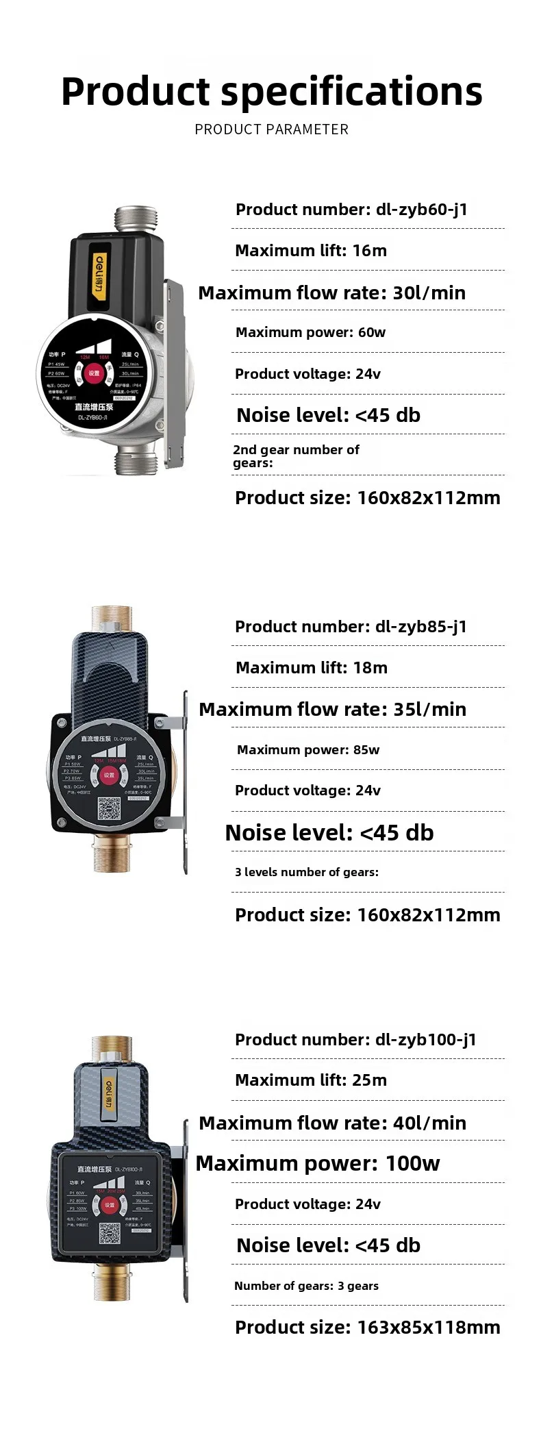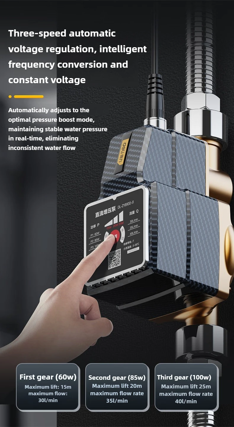 Deli 100W Automatic Household Pressure Pump Quiet Smart Variable Frequency No-Drilling Tap Water & Water Heater Compatible 60W
