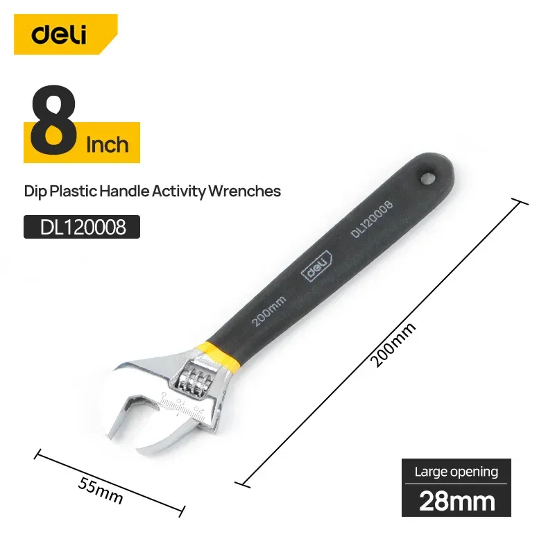 Deli Adjustable Wrench Car Bicycle Wrenchs Dip Plastic Carbon Steel Universal Spanner Mechanical Workshop Hand Repair Tools