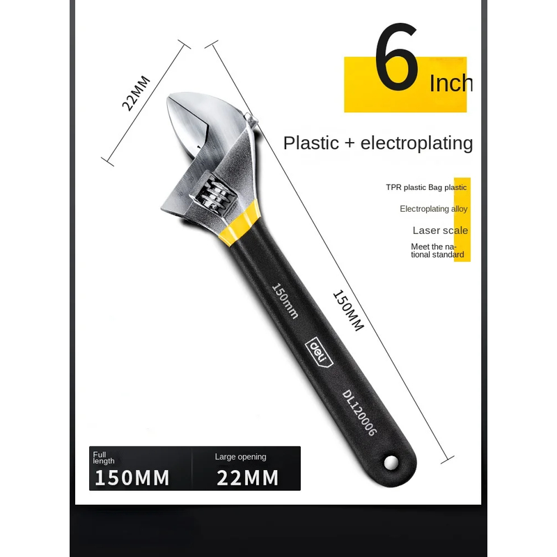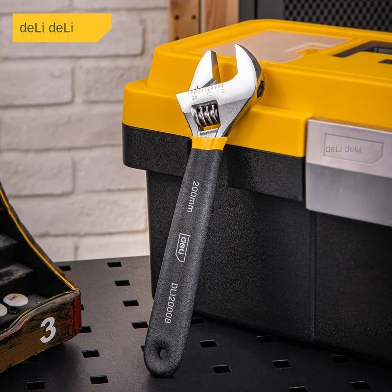 DELI Adjustable Wrench Universal Spanner Dip Plastic Carbon Steel Mechanical Workshop Hand Repair Tools Car Bicycle Wrench