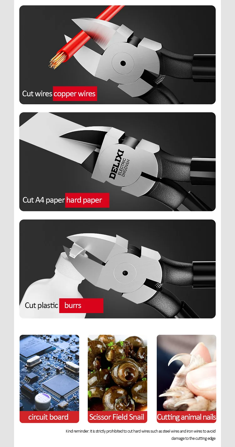 DELIXI ELECTRIC Nozzle Pliers Electronic Pliers Industrial Scissors Diagonal Pliers,for CuttingMetalWireCablePlasticsWood