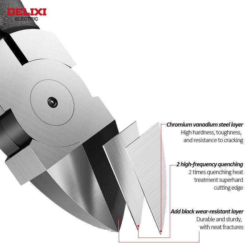 This Delixi electric nozzle clamp is made of chrome vanadium steel, with high hardness and sharp cutting, which can easily