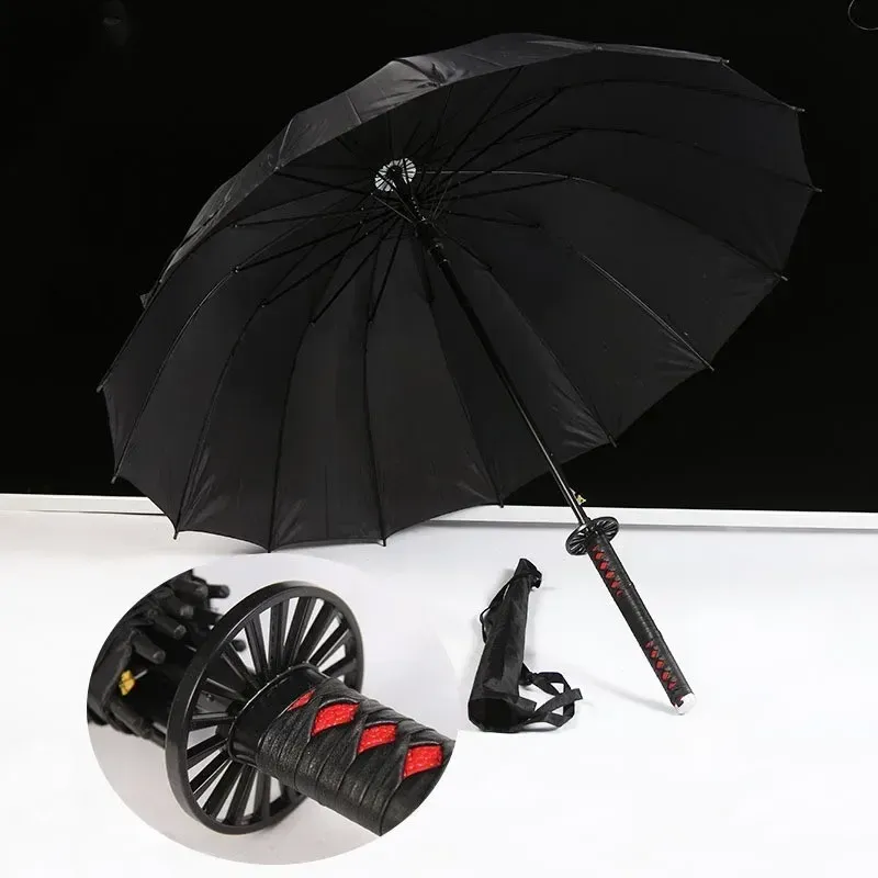 Demon Slayer Mitsuri Katana Umbrella Tanjirou Long Rain Black Parasol Real Japanese Katana Samurai Sword Umbrella Anime Parasol