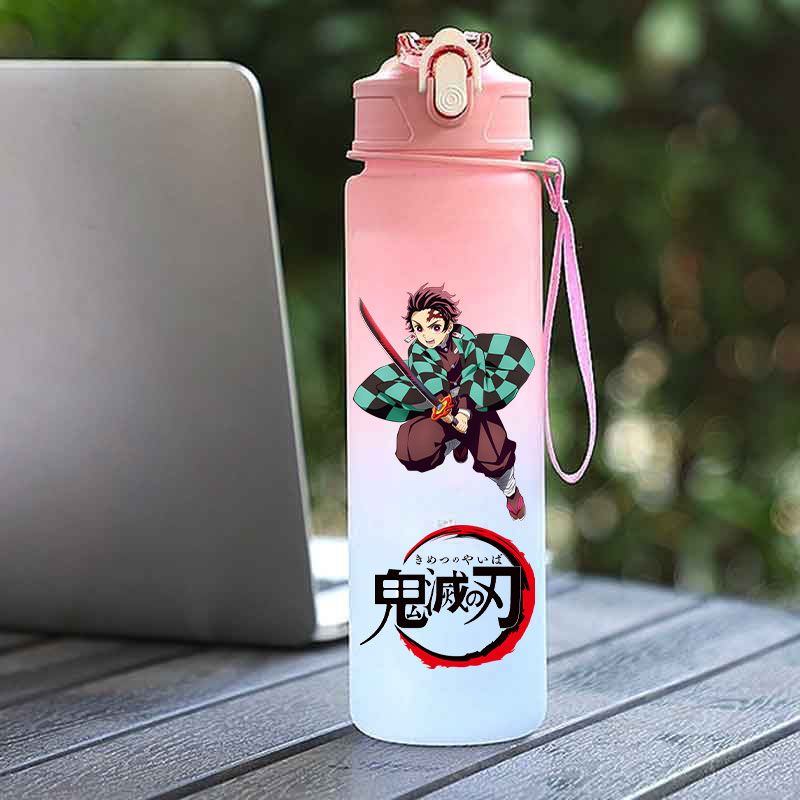 Demon Slayer Straw Cup 750ML Children's Large Capacity Portable Kamado Nezuko Sports Plastic Bottle Anime Gradient Drinking