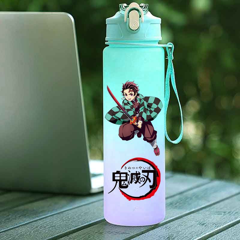 Demon Slayer Straw Cup 750ML Children's Large Capacity Portable Kamado Nezuko Sports Plastic Bottle Anime Gradient Drinking