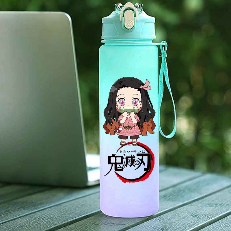 Demon Slayer Straw Cup 750ML Children's Large Capacity Portable Kamado Nezuko Sports Plastic Bottle Anime Gradient Drinking