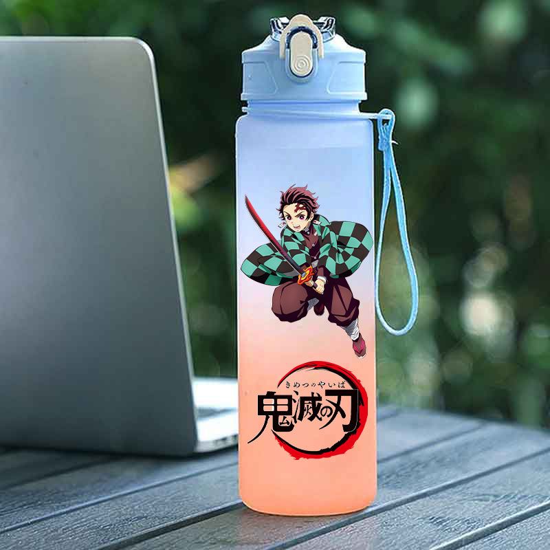 Demon Slayer Straw Cup 750ML Children's Large Capacity Portable Kamado Nezuko Sports Plastic Bottle Anime Gradient Drinking