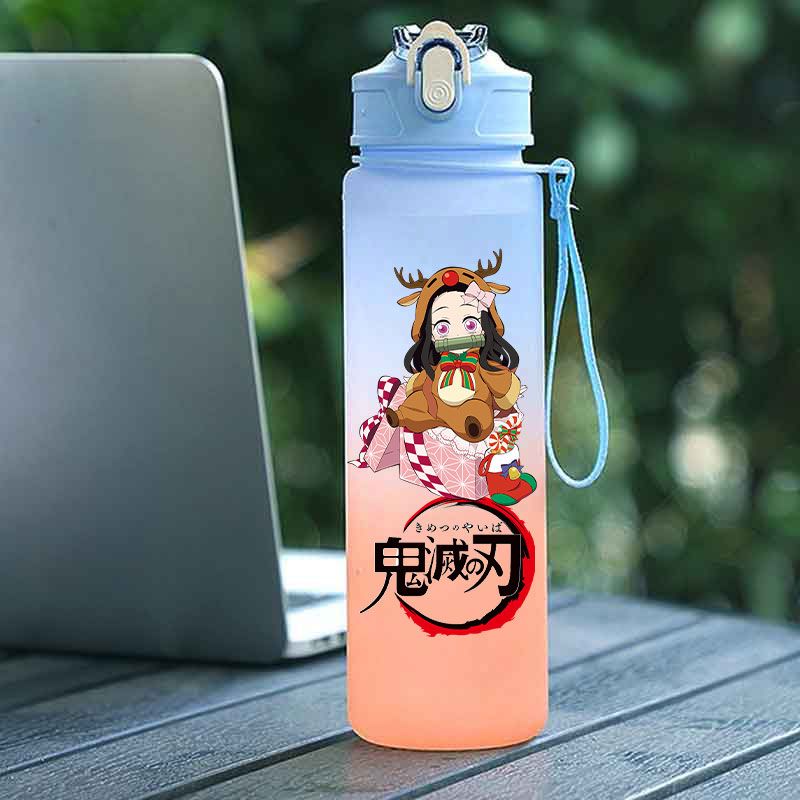 Demon Slayer Straw Cup 750ML Children's Large Capacity Portable Kamado Nezuko Sports Plastic Bottle Anime Gradient Drinking
