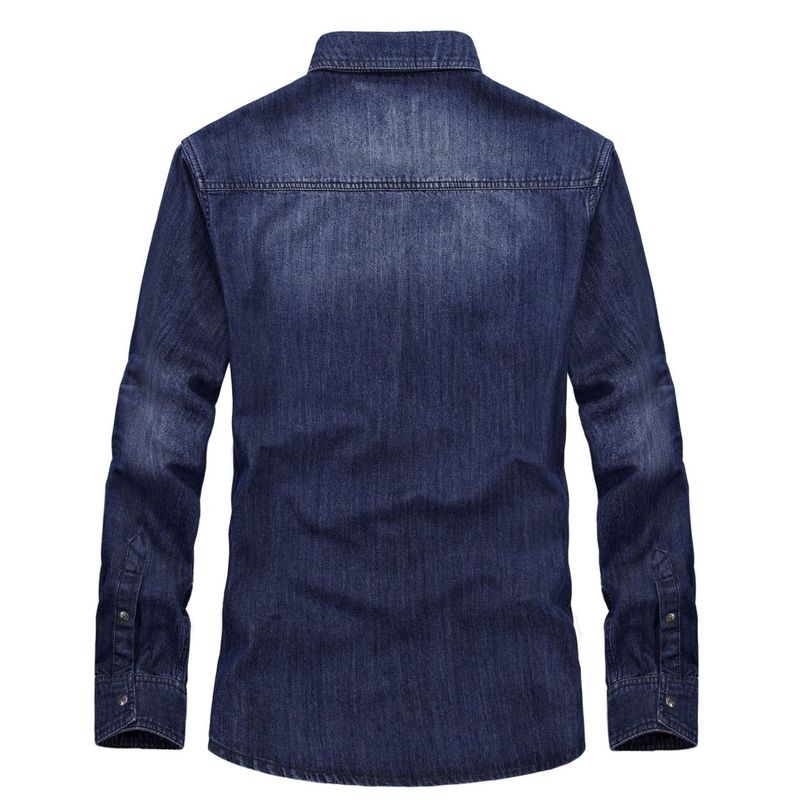 Denim Shirt Men's Casual Long Sleeve 6522 Black And Blue XXXL