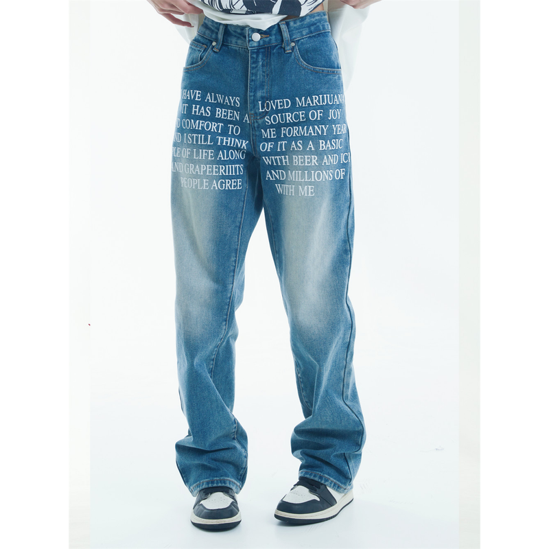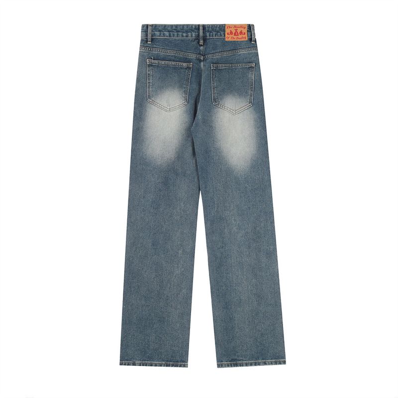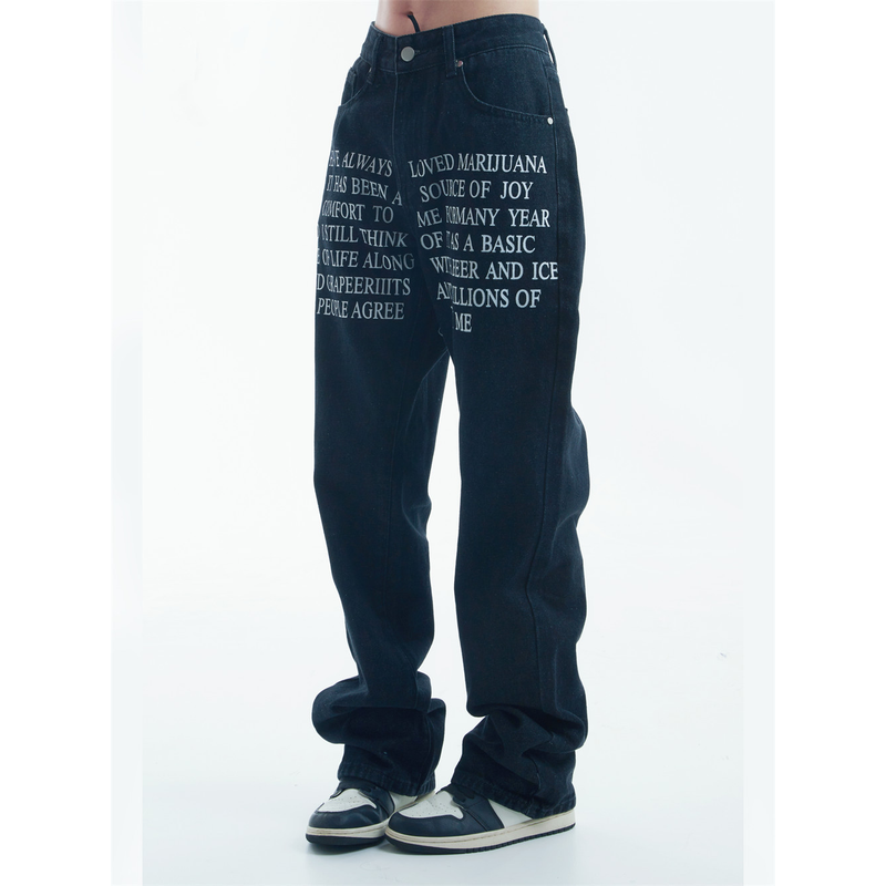 Denim Straight-leg Trousers Men And Women Black XL