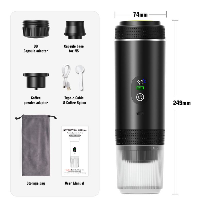 【Package Include】Coffee machine mainframe+colour box package+USB cable+Manual+Coffee Spoon+Storage bag