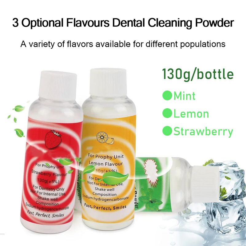 Dental Polishing Powder Prophy Air jet Flow Teeth Cleaning Plaque stain Removal Sodium bicarbonate 130g Mint Lemon Strawberry