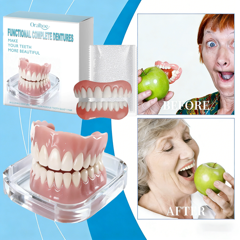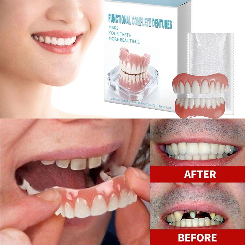 Dentures Full Set Natural Upper Lower Braces Silicone Denture Set for Men Women Instant Confident Fake Tooth Oral Hygiene Care
