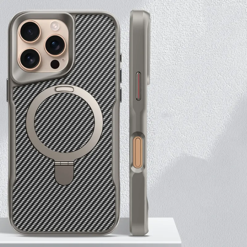 Desert Titanium metal holder carbon fibre magnetic phone case for iPhone 16 15 14 13 12 Pro Max magsafe charging armor hard case