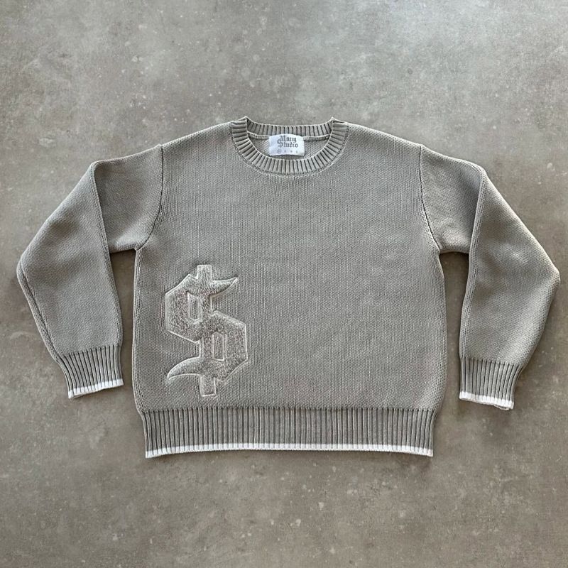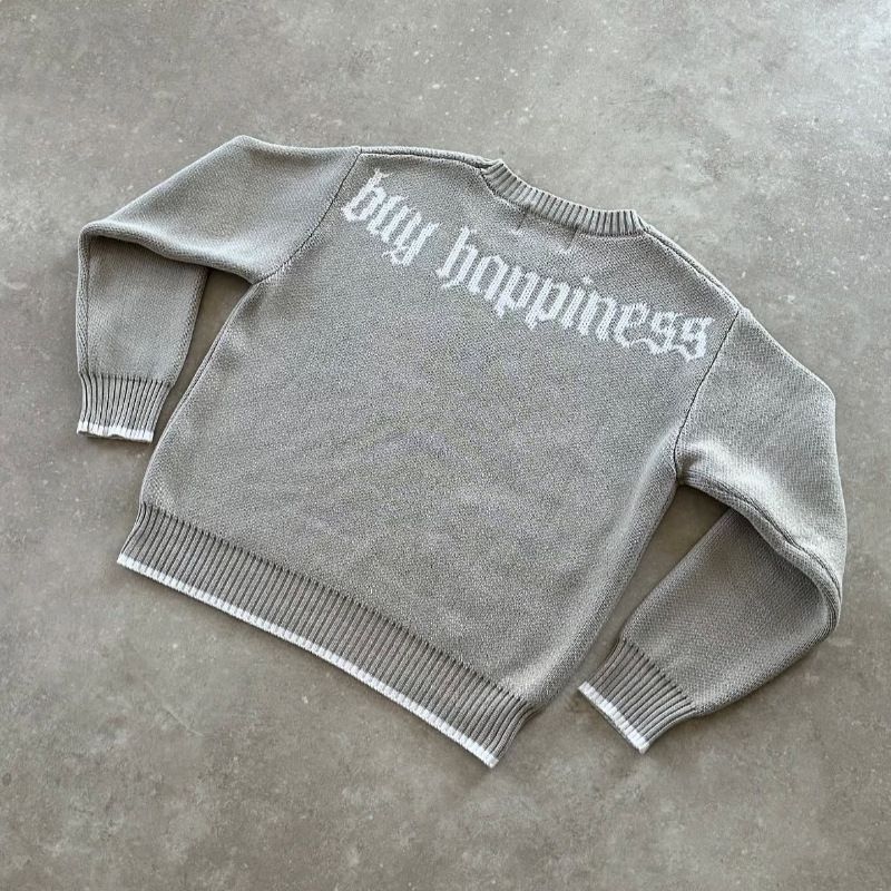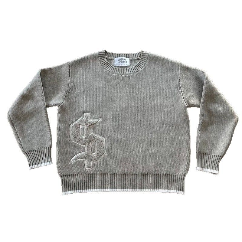 Design Sense Jacquard Loose-fitting Knitwear Autumn Winter Coat Gray S