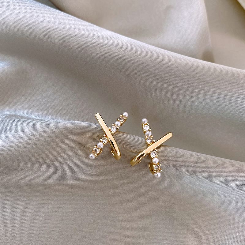 Design Sense Korean Exquisite and Small Cross Shaped Pearl Earrings Fashion Girl's Unusual Accessories Luxury Jewelry For Woman