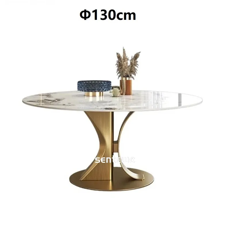 Designer Luxury Round Dinning Marble Rock Slab Dining Table Set 4 6 Chairs Mesa Posta Furniture Meuble Stainless Steel Gold Base