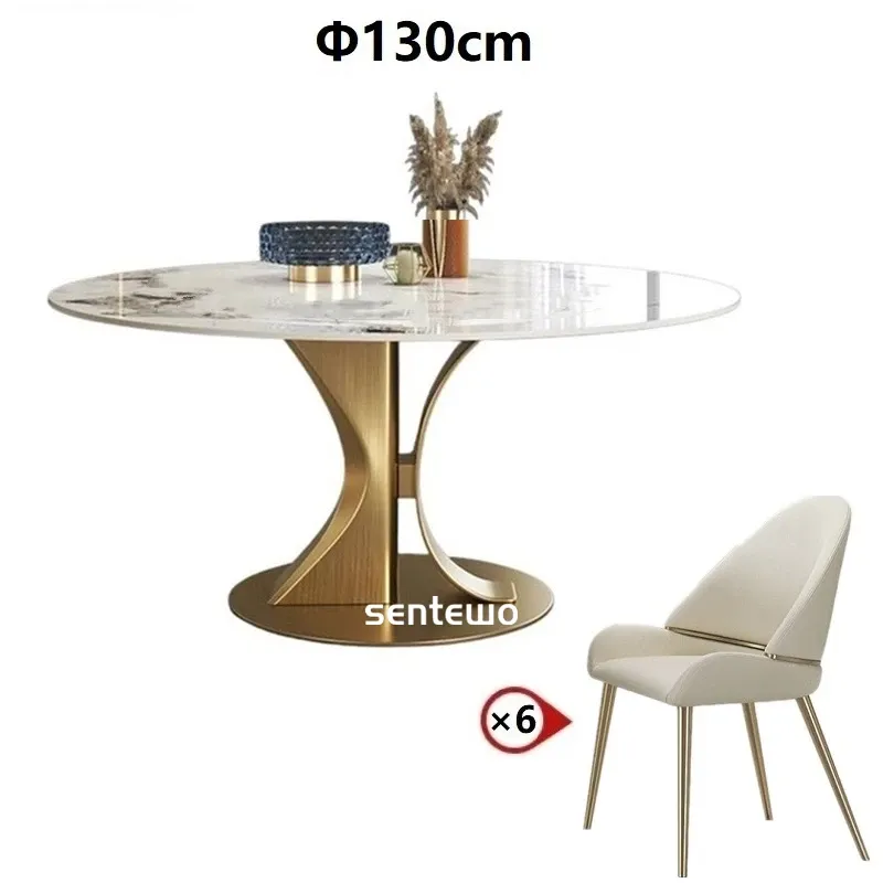 Designer Luxury Round Dinning Marble Rock Slab Dining Table Set 4 6 Chairs Mesa Posta Furniture Meuble Stainless Steel Gold Base
