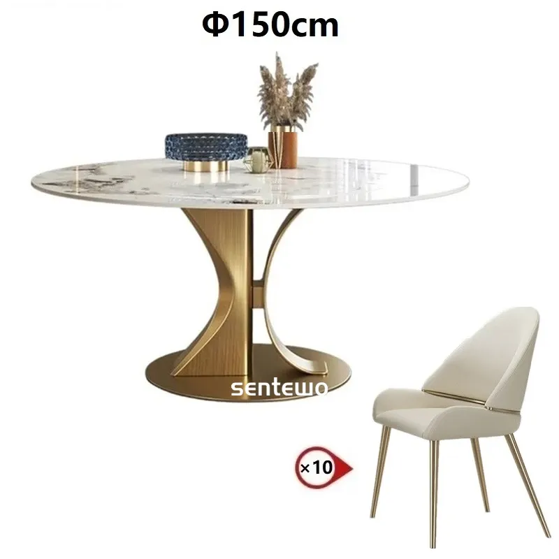 Designer Luxury Round Dinning Marble Rock Slab Dining Table Set 4 6 Chairs Mesa Posta Furniture Meuble Stainless Steel Gold Base