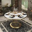 Designer Luxury round dinning Marble Rock Slab dining table set 6 chairs mesa comedor sillas furniture Stainless steel gold base