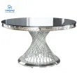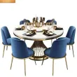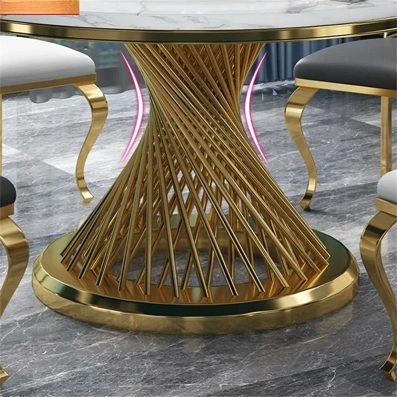 Designer Luxury round dinning Marble Rock Slab dining table set 6 chairs mesa comedor sillas furniture Stainless steel gold base